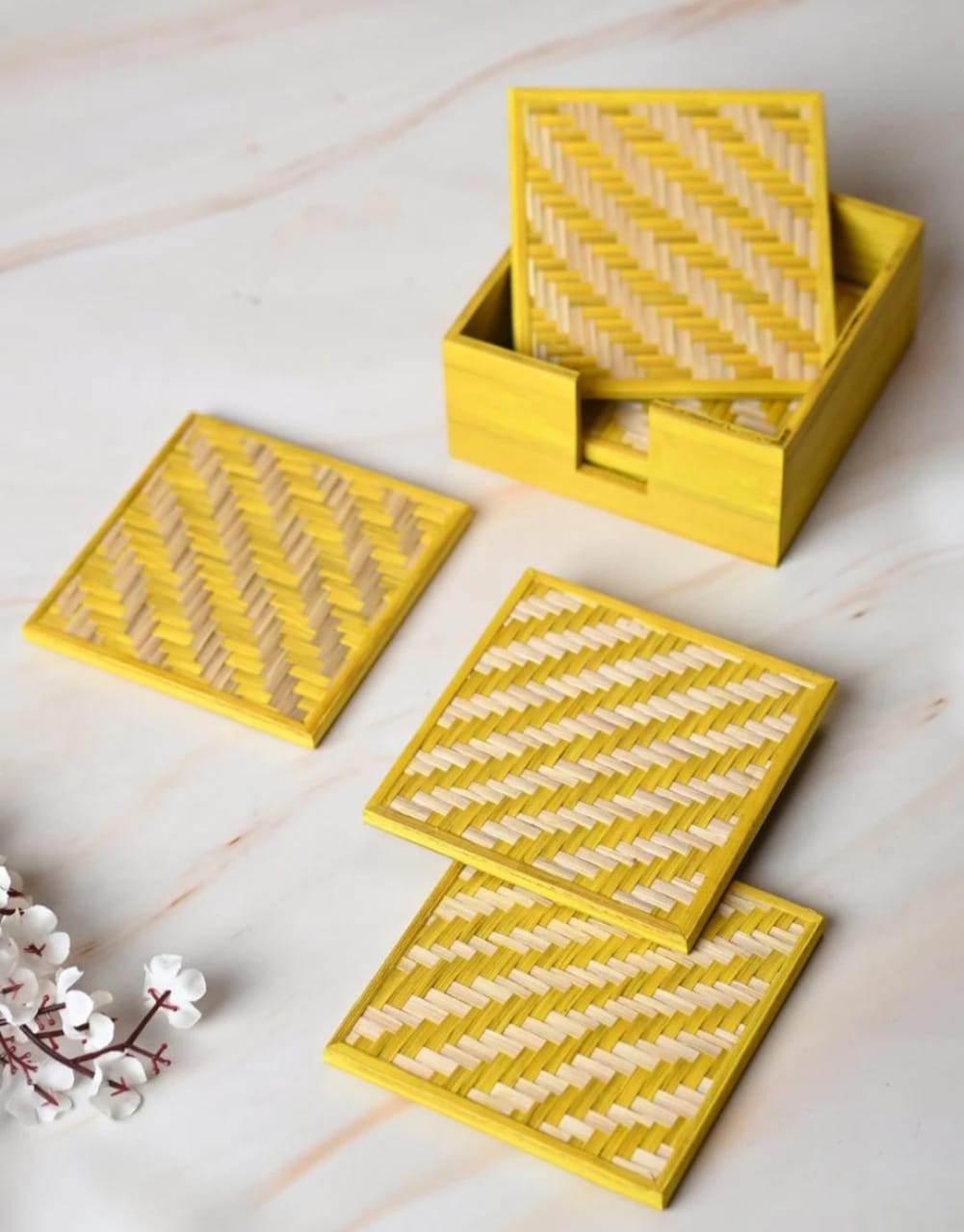 Crafted by skilled artisans in West Bengal, each coaster reflects the beauty and durability of bamboo. They are easy to clean—simply wipe with a damp cloth!