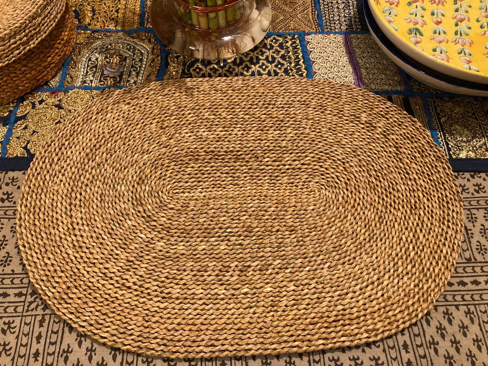 Add a touch of refined beauty to your dining table with our Hogla Elegance Table Mats. Handcrafted from rare, durable Hogla grass sourced from West Bengal, these oval mats feature a soft, natural shine that sets them apart. Available in natural hues and vegetable-dyed shades like light green and orange, they’re an eco-friendly choice for stylish, sustainable decor. Perfect for both casual and formal settings, these mats bring a warm, inviting feel to every meal.