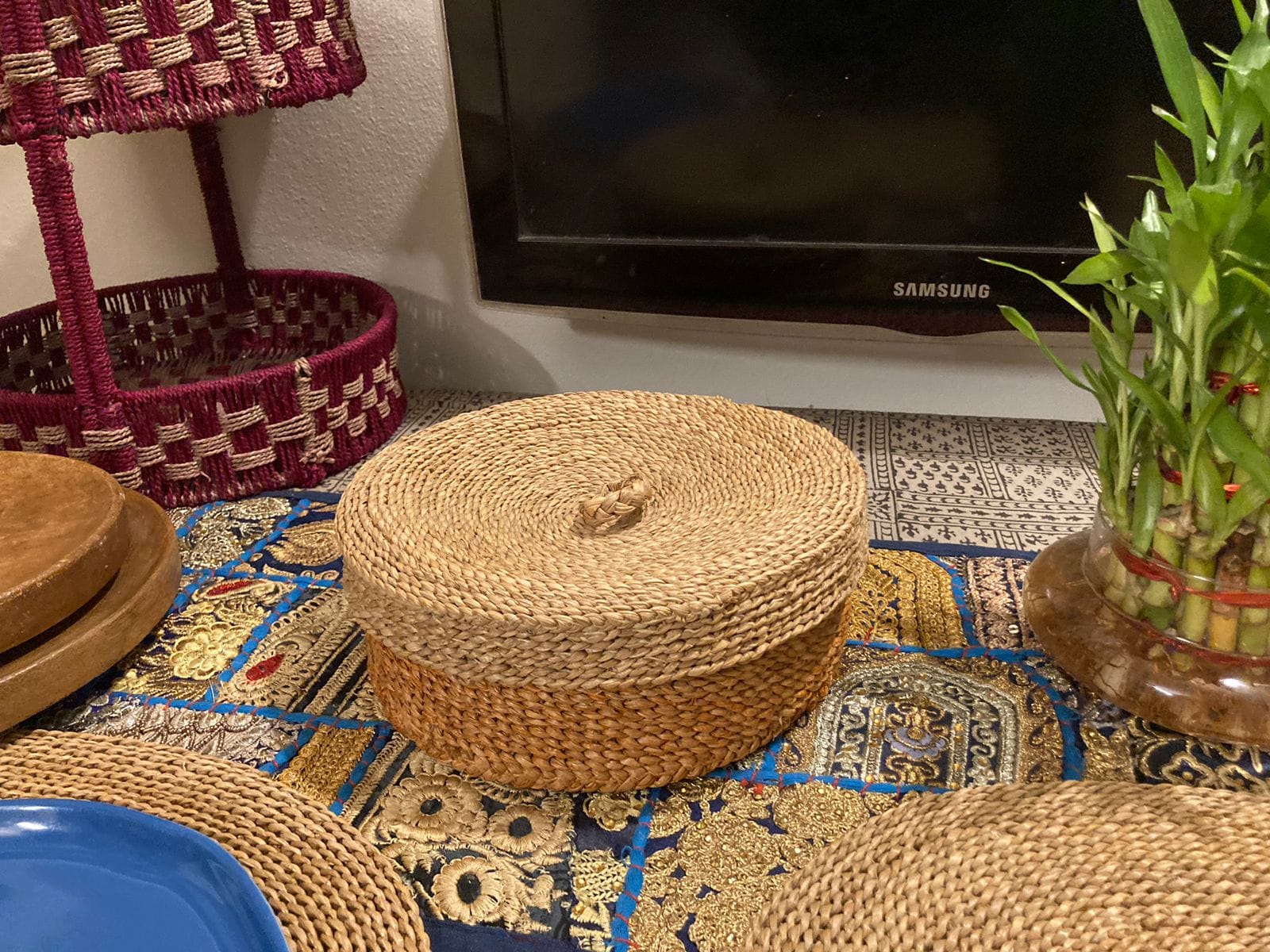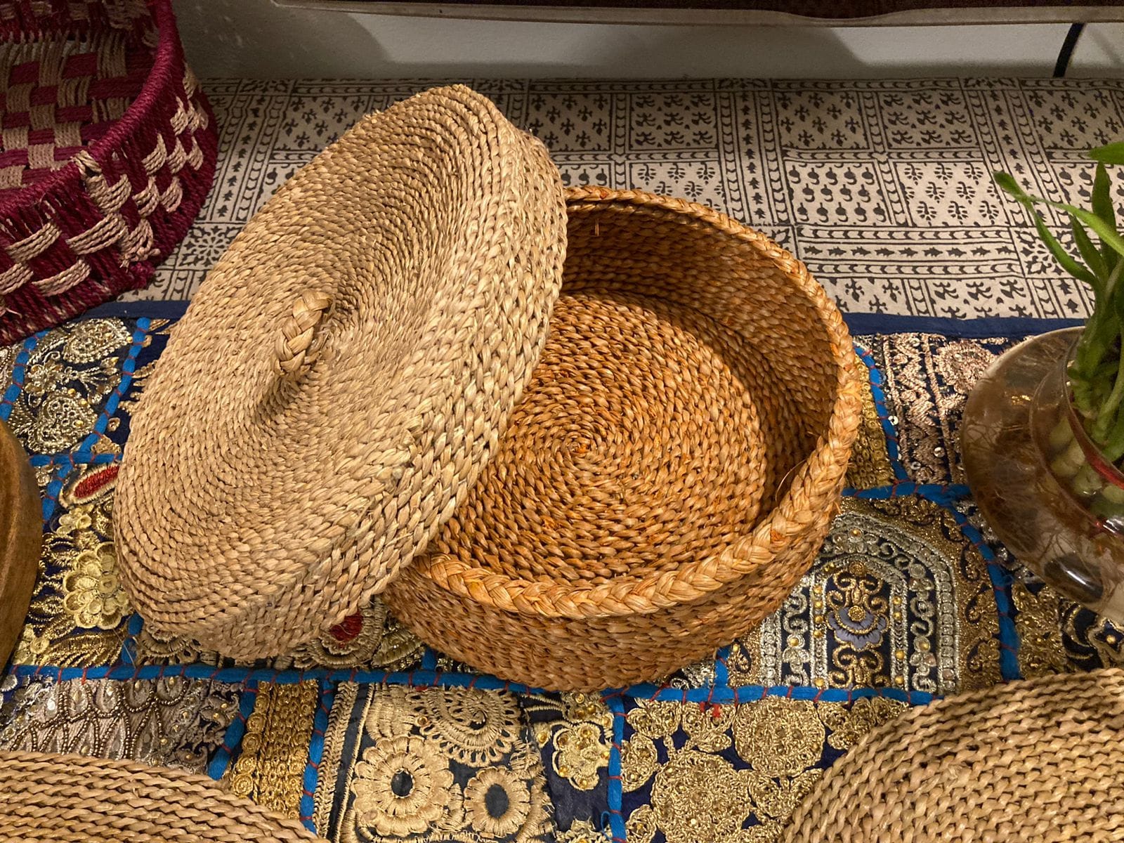 Store and serve in style with our handcrafted Hogla Grass Chapati Box, designed to keep chapatis warm while adding a rustic touch to your dining table. Made from durable, natural Hogla grass and available in earthy shades like green and orange, this round chapati box offers both elegance and functionality. Each piece is naturally woven and vegetable-dyed, making it a sustainable, eco-friendly choice for your kitchen. Perfect for family meals and gatherings, it’s a beautiful way to present fresh, warm chapatis.