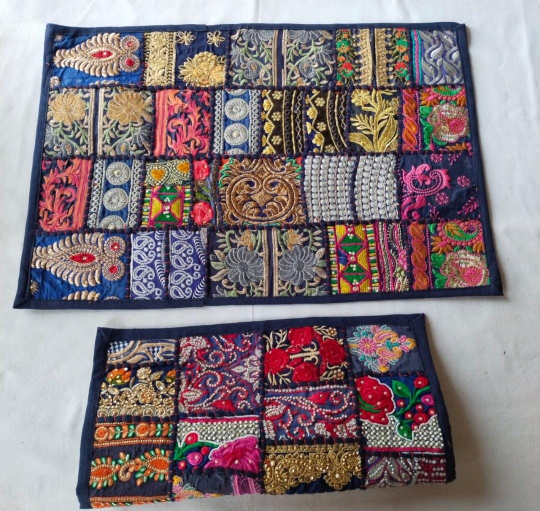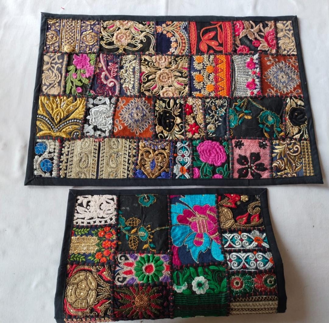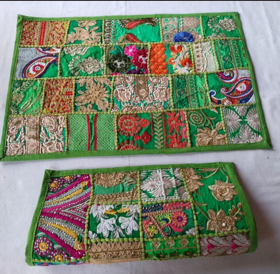 Add a touch of Rajasthani elegance to your home with our handcrafted Kambadiya pillow covers. Each piece is a one-of-a-kind creation, showcasing vibrant patchwork made from recycled cotton fabric, adorned with intricate sequin, bead, and mirror work. The eclectic mix of colors and patterns brings a burst of life and traditional artistry to your bedroom or living space.