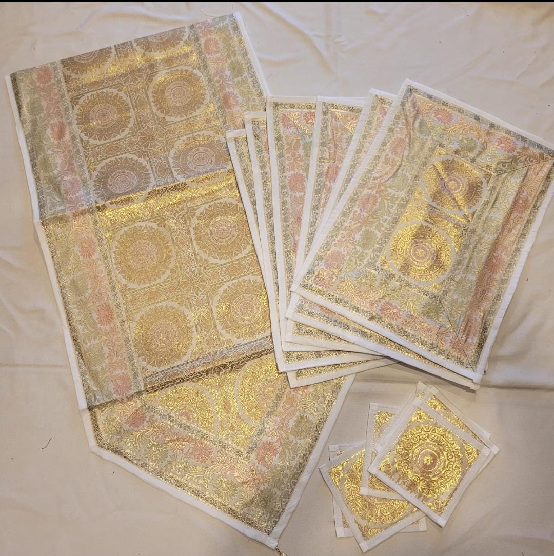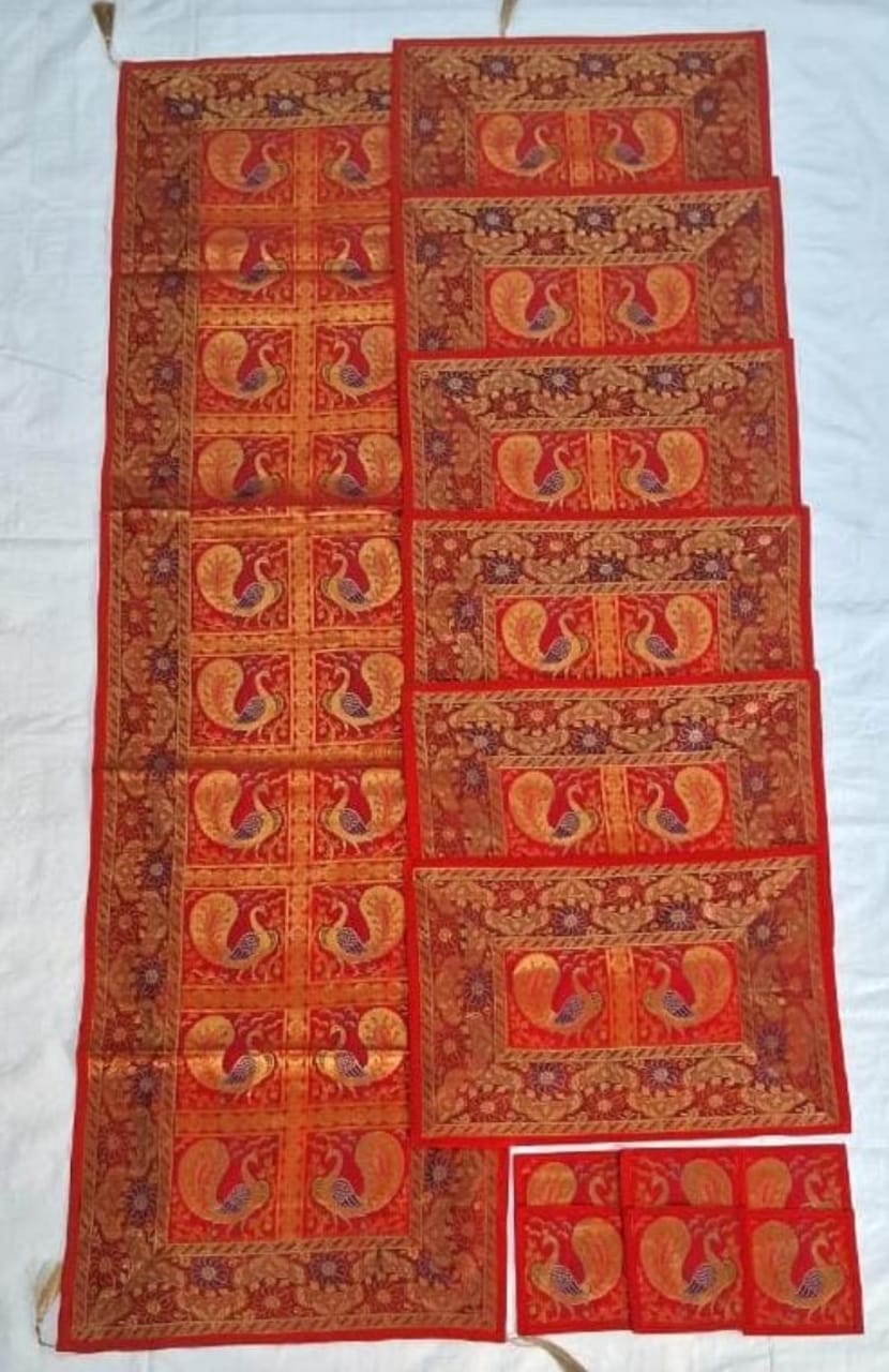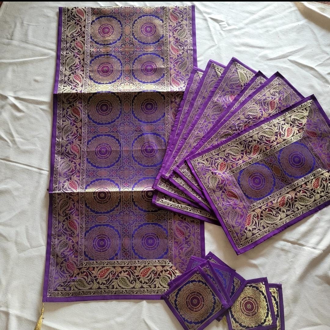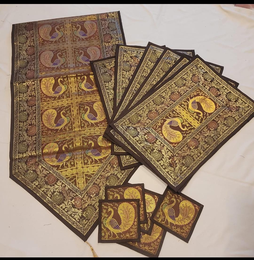 Add a luxurious touch to your dining table with this beautiful table set, perfect for festive occasions, gifting, or simply enhancing your everyday dining experience. Bring home the charm of traditional Banarasi craftsmanship with this timeless collection.